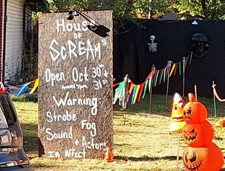RN Just got back from the inspection of the new place and this is what's going on directly across the street. They are having a haunted house! Can you see the cemetery and the zombies LOL