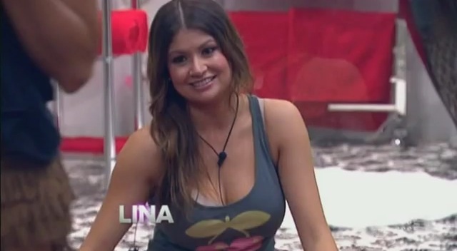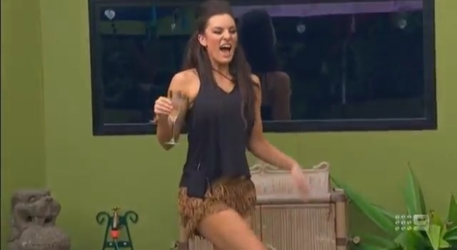 Later Aisha is in the diary room. Big brother has made the diary room extra comfortable, and included a harp for even more temptation.