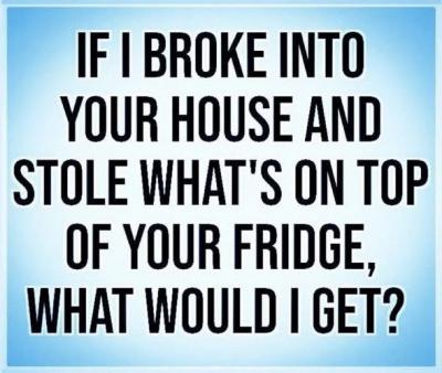Umm there might be one thing, but my fridge is new and I haven't moved in again and almost nothing is put away. The two mini fridges in the garage, though.. Batteries, Mosquito dunks, some gardening stuff, A box of items like supplements, vitamins and quite a lot of small things